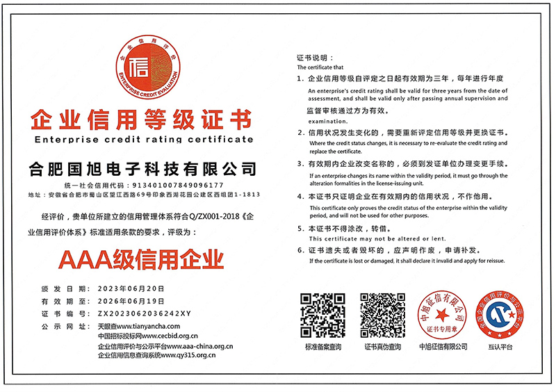 合肥國旭電子科技有限公司創立于2006年,總注冊資本2008萬。公司總部地址位于安徽IT主流商圈核心,合肥市蜀山區望江西路與肥西路交口西湖國際廣場。 公司是專業從事智能防雷檢測系統、智能化工程設計與施工工程、防雷設計施工工程、數據中心機房、消防工程、網絡監控安全技術防范工程、及智能變電站安全預警系統。